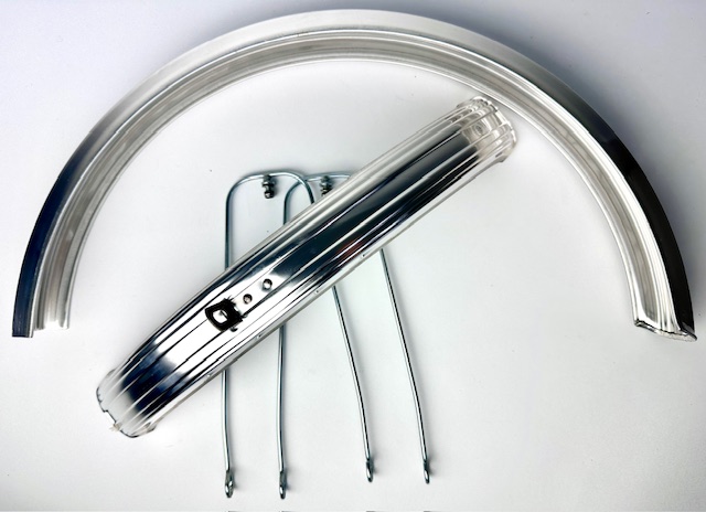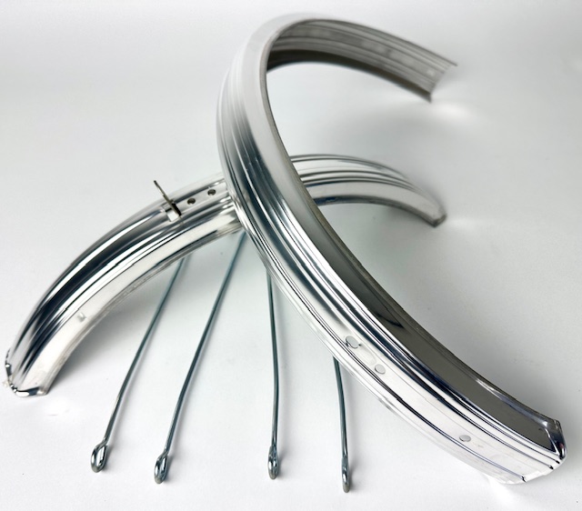 Guardabarros vintage con tirantes de acero para ruedas de 16 pulgadas, plateados.